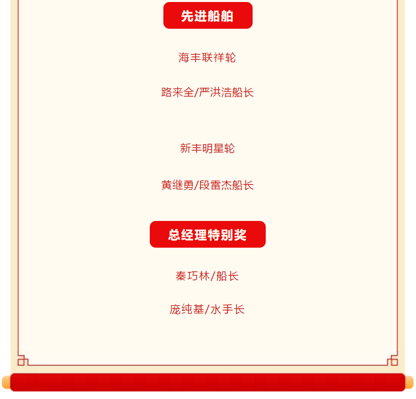 艱辛的一年就要過去了,為表彰先進,樹立典型,弘揚進取精神,充分調(diào)動廣大船員的積極性、主動性和創(chuàng)新性,進一步激勵工作在一線船員的工作熱情,形成“船船爭先進、人人比貢獻”的良好氛圍。經(jīng)研究決定,對本年度內(nèi)公司所有派員船舶及所派船員進行評比考核,結(jié)合船東對各輪的考核,評選出新的“先進船舶”、“先進個人”及“總經(jīng)理特別獎”,并給予一定的物質(zhì)獎勵。