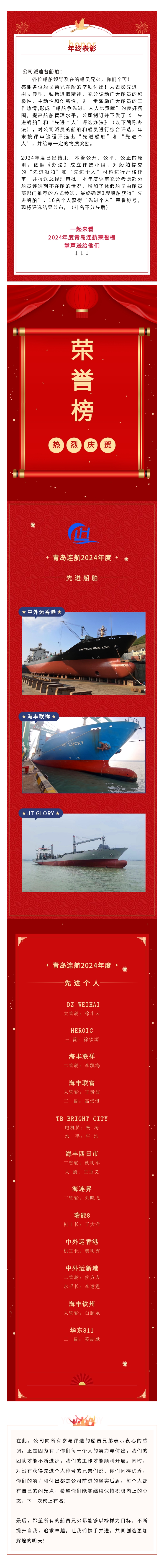 隆重表彰 │ 2024年度青島連航先進船舶和先進個人